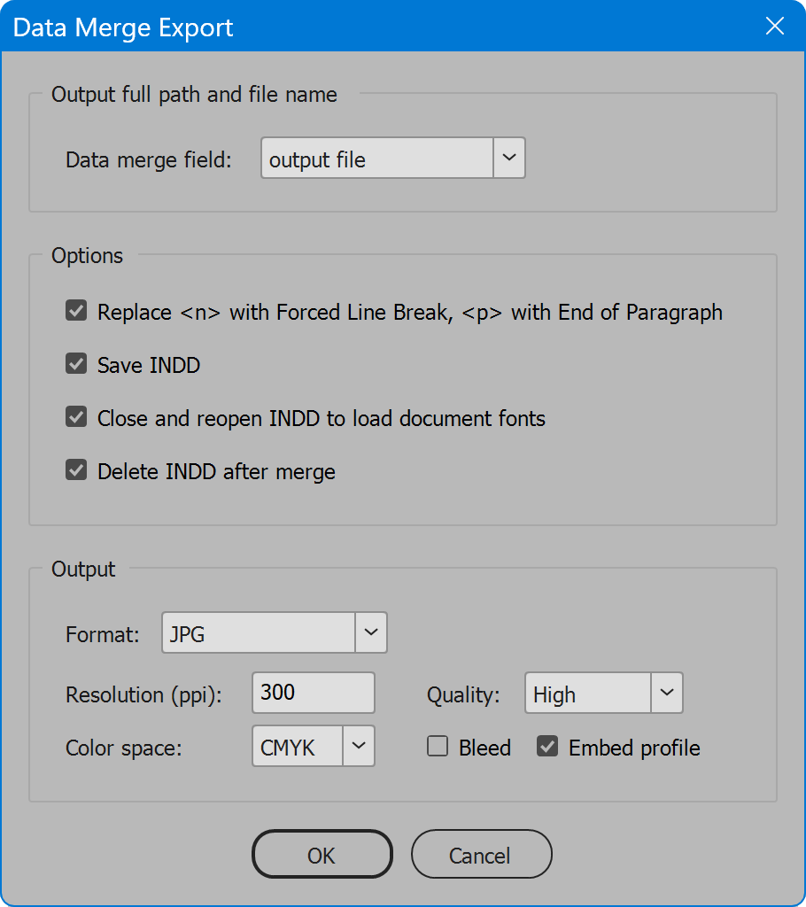 Add a merge field for full path and file name and the script uses the column to export each record. Not limited to PDF format.